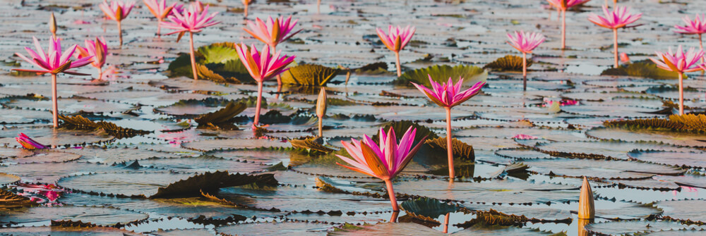 Vi har en vacker fototapet av ett hav av lotusblommor. På trycket från vår samling är lotusblommorna rosa. Föredrar du en annan färg? Då kan du också beställa tapeter med ditt eget foto. På så sätt kan du faktiskt bestämma färgen själv. Lotusblommor kommer inte bara i rosa utan också i vitt, rött, blått och lila. Om du har ett foto av god kvalitet kan du trycka det i verklig storlek och klistra det på väggen. Detta kommer att skapa en lugn atmosfär i din interiör och samtidigt göra ett stort statement.