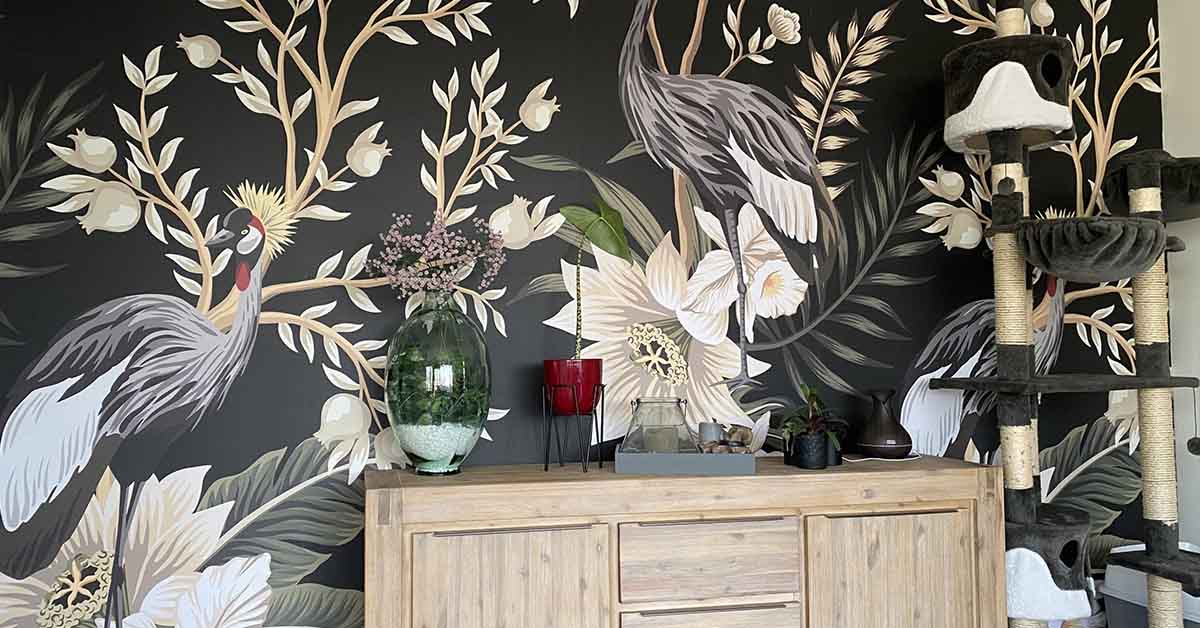 Dessutom ger trantapeter atmosfär till hemmet och för in utomhuskänslan inomhus. Beroende på vilken tapet med tranor som du väljer kan du använda denna i din inredning på olika sätt. Du kan använda den för att tapetsera en hel vägg, eller bara en del. Väggmålningar på tranor finns i olika färgnyanser. På så sätt finns det alltid en design som passar i rummet där du vill tapetsera. Vårt tips: Använd samma färgfamilj för vidare möblering. Det här är färger som härrör från varandra eller passar bra ihop. På så sätt säkerställer du enhet och trantapeten kommer till sin rätt.