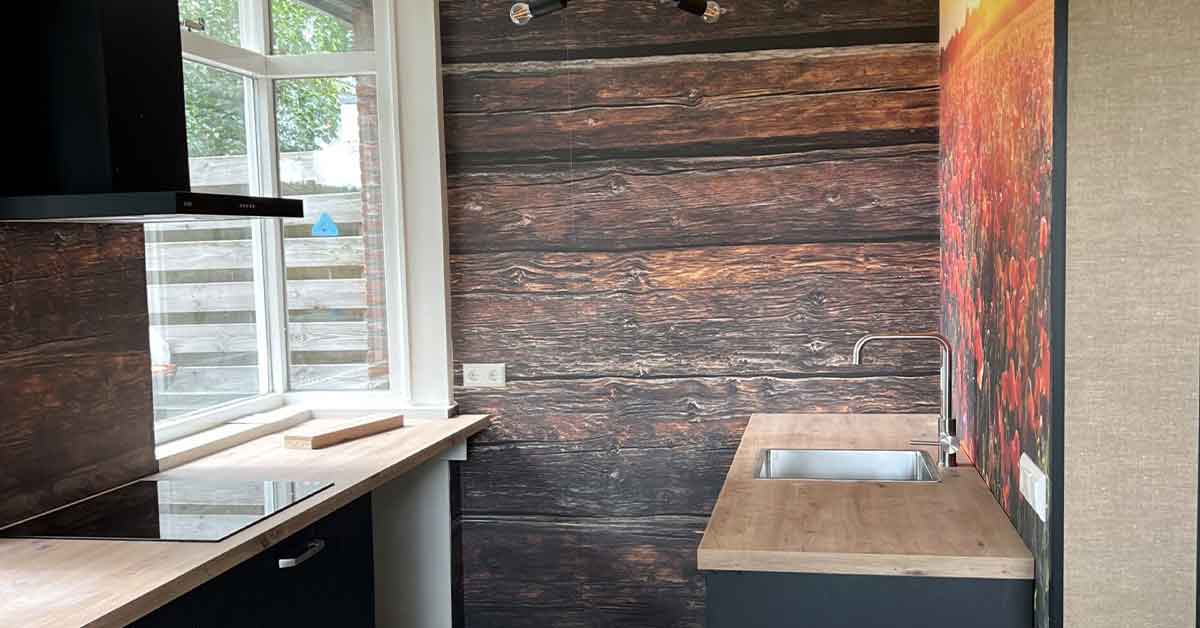 Du kan dessutom arbeta mycket snyggt med tapeter, utan avfall och sågspån. Välj mellan de olika utskrifterna på den här sidan eller skicka in ditt foto. Om ditt önskade tryck inte finns med, hör av dig till oss. Vi hjälper dig att söka efter rätt tapet. Trätapet ger dig en naturlig känsla i ditt hem.
