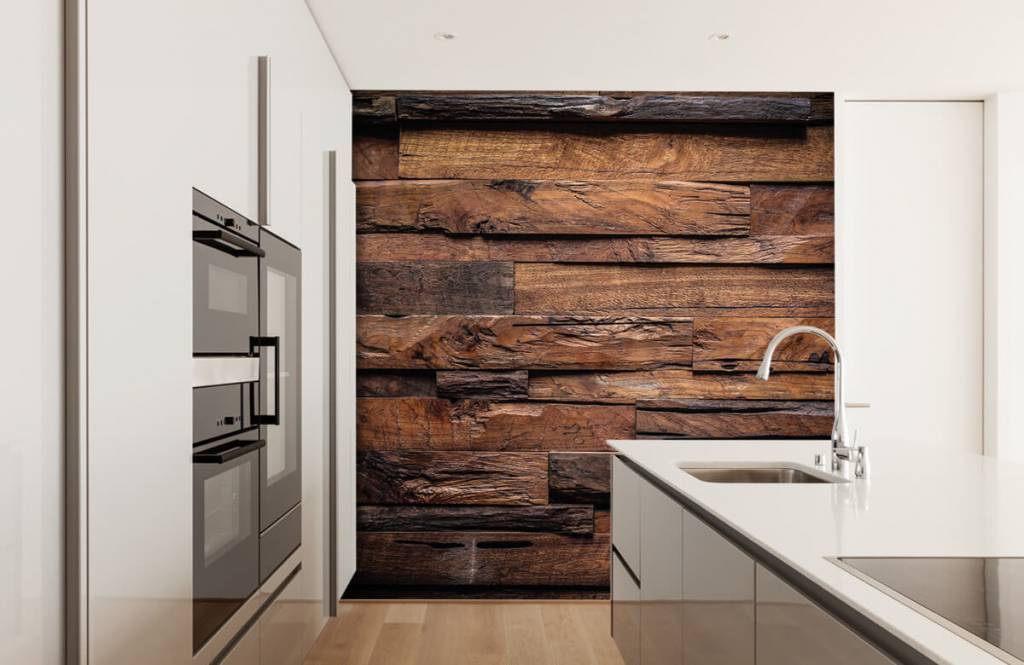Trätapeter skapar en cool, robust, och industriell atmosfär. Trä passar i nästan varje inredning. En tapet av byggnadsställningsplankor är också vacker bakom sängen i sovrummet. Att köpa dina plankor och såga dem till rätt storlek kan vara ett tidskrävande och dyrt jobb. Fototapeter med trämotiv ser till att du har en look, men inte arbetet med att applicera trä.