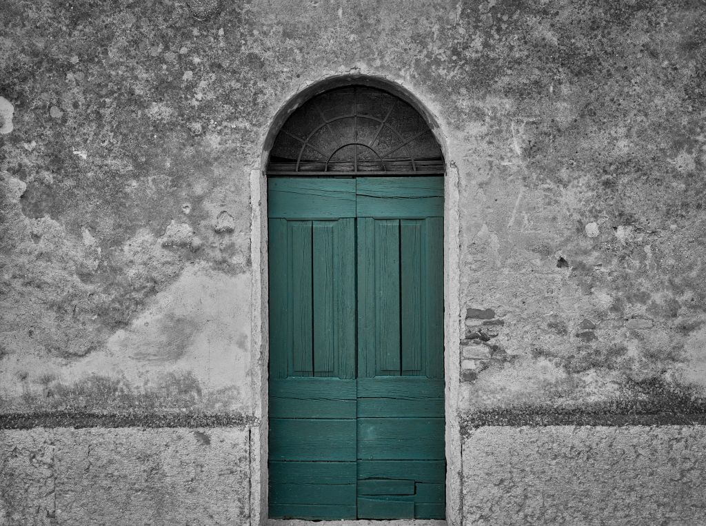 Grön dörr i gammal vägg