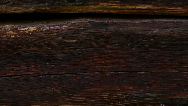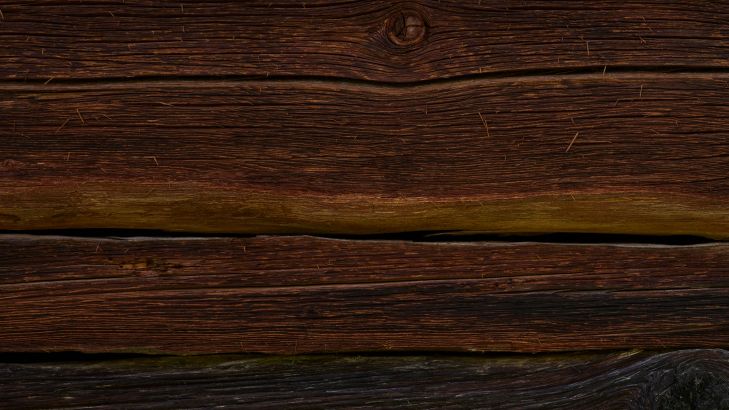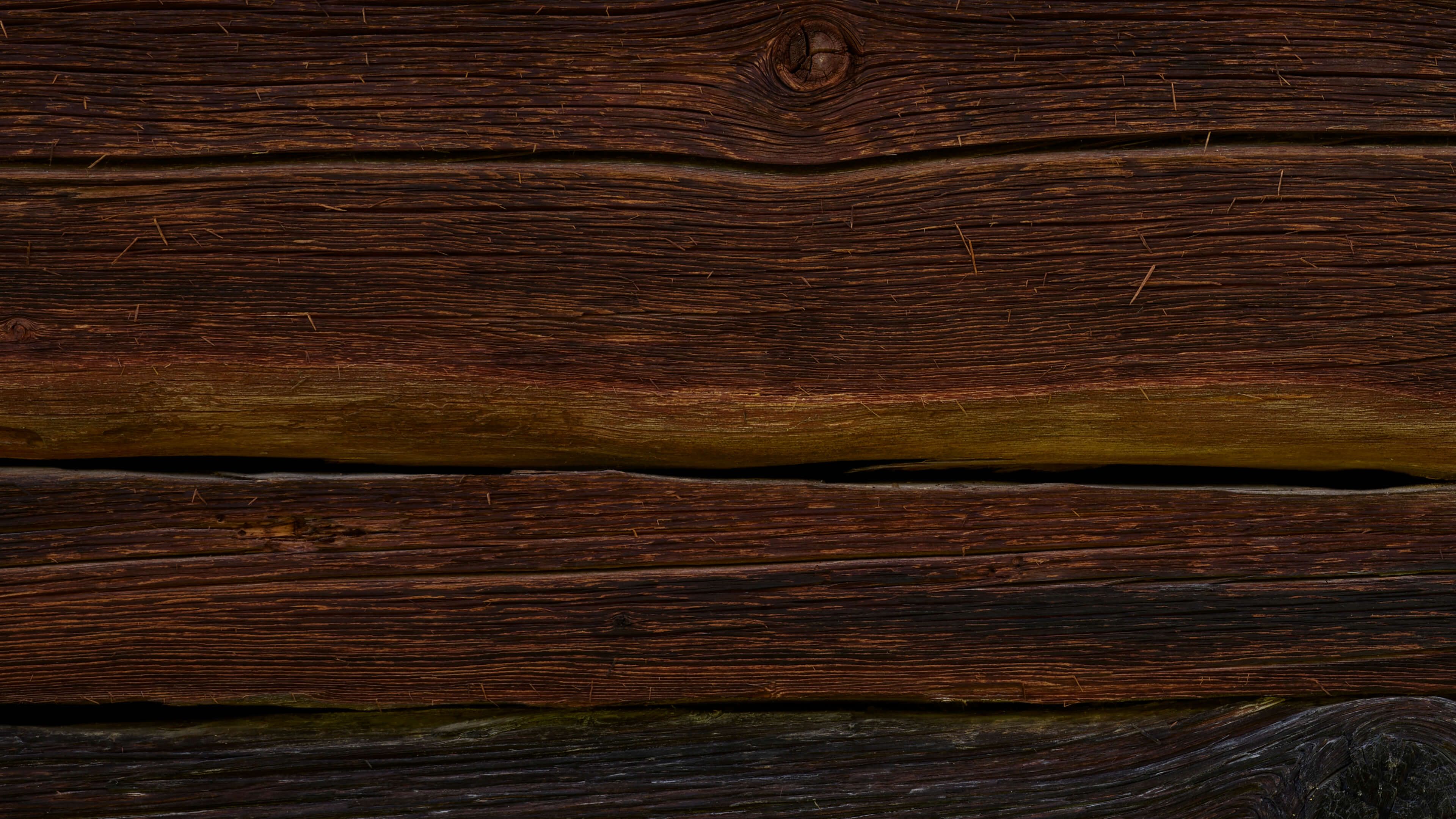 Gammalt och mörkt robust trä. På grund av den skarpa bilden syns skadorna på träet tydligt. Detta ger en livlig effekt till den här fototapeten.