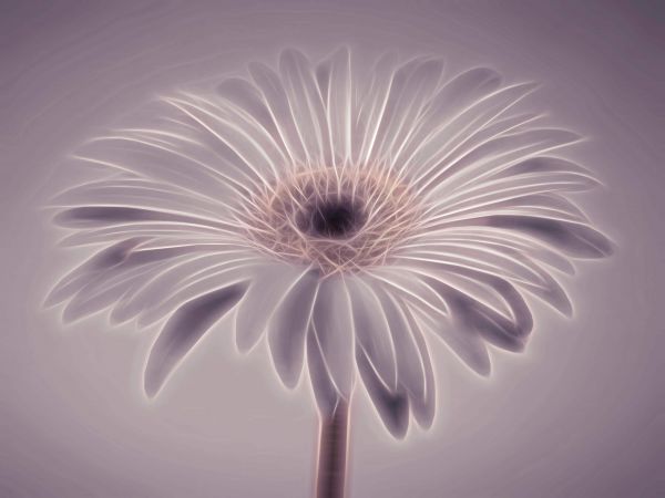 En Gerbera med lila och vit effekt. Kombinera den här fototapeten i ditt hem för att skapa ännu mer atmosfär.