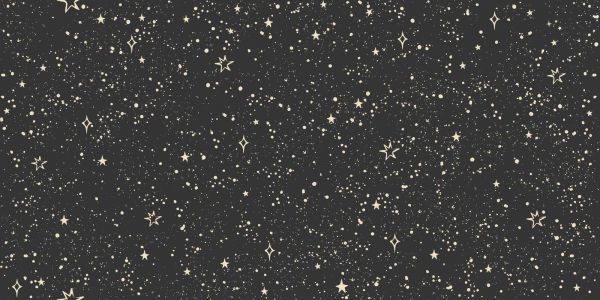 Ett livfullt stjärnmönster med glittrande former, stänk och prickar i mjuk crème på en djup svart bakgrund. Designen utstrålar magi, lätthet och en touch av fantasi.