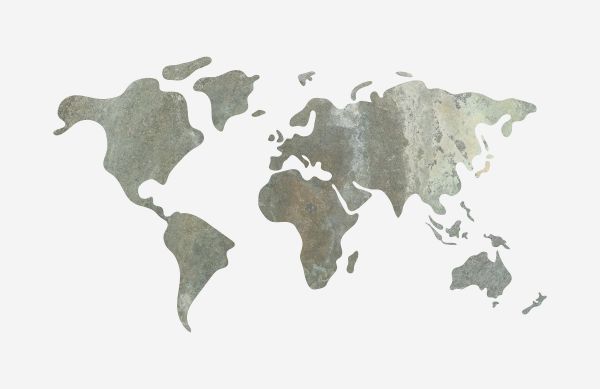 Världskarta med en vacker grön metallstruktur på en vit bakgrund. Den vita bakgrunden får världskartan att framträda vackert.