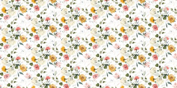 En poetisk scen av fältblommor i höstliga toner sträcker sig över denna design, där blommorna mjukt övergår från sandfärg till djupt terra och blekt rosa.