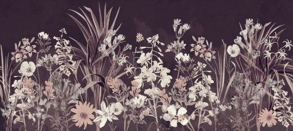 Ett frodigt fält av blommor i ett överflöd av färger, från mjuka pastellfärger till djupa jordnära toner. Klargula solrosor och fina lila blommor kombineras med färskt grönt bladverk. Designen utstrålar glädje och ger en livlig, somrig känsla till alla rum.