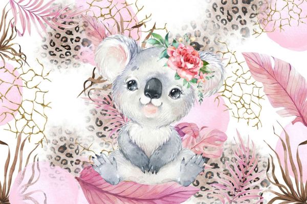 Vacker tapet med en liten koalahona i en brun och rosa savannmiljö.