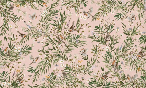 Tapet - Playful Robins - Pink