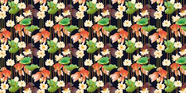 Lotusar och fiskar på fototapeter. Med den här fototapeten är det som att sitta i ett akvarium med fiskarna.