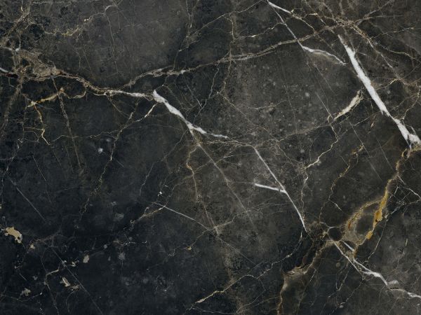 Mörk marmor med en vit och gyllene linjestruktur. De gyllene och vita färgerna ger den här fototapeten en lyxig look.