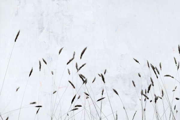 Mörka gräsax sticker elegant av mot en ljus bakgrund. Den subtila kompositionen och mjuka texturen skapar en återhållen, minimalistisk atmosfär full av lugn.