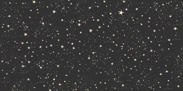Denna design visar ett stilla stjärnlandskap som för tankarna till en klar natt långt från staden. Den svarta bakgrunden erbjuder en djup, oändlig bas på vilken otaliga krämvita stjärnor och stänk subtilt har strötts ut. Stora och små stjärnor avlöser varandra med skrovliga prickar, vilket gör mönstret lekfullt och organiskt. Genom det minimalistiska färgvalet förblir designen luftig och tidlös, samtidigt som den väcker en tydlig känsla av magi och förundran.