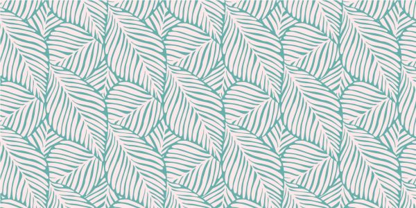 Grön fototapet av tropiska löv i en ljus krämfärg.