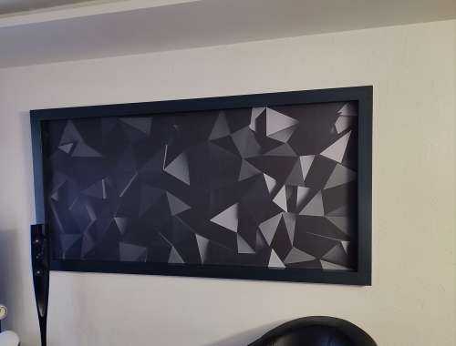 En abstrakt illustration av mörka trianglar i olika storlekar.