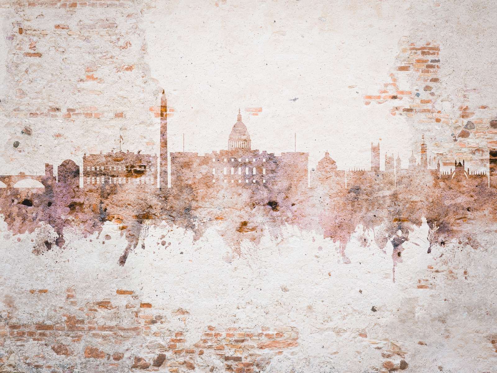 En akvarell-skyline av Washington i urban stil. Skylinen er tilgjengelig med forskjellige bakgrunner.