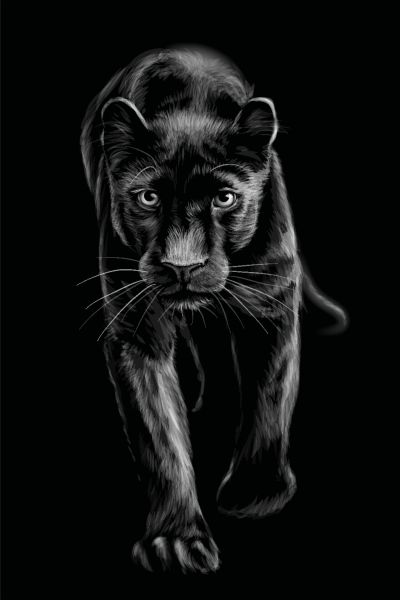 En løpende panter på fototapet. Med dette fototapetet på veggen er det som om panteren går inn i rommet.
