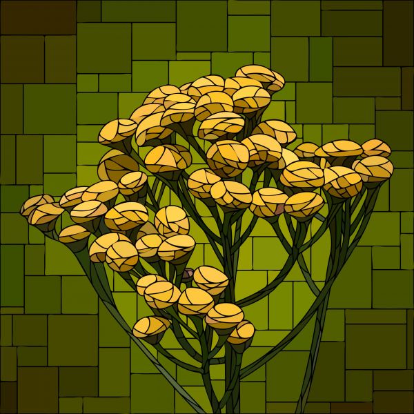 Gule blomster i blomst på fototapet. Bildet har en glassmaleri-effekt, så dette fototapetet gir rommet enda mer atmosfære.