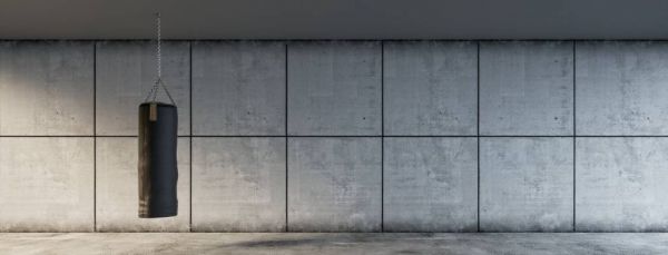 Boksesekk med betong tapet i et treningsstudio. Kraftig og industrielt image for et hardt og sporty utseende.