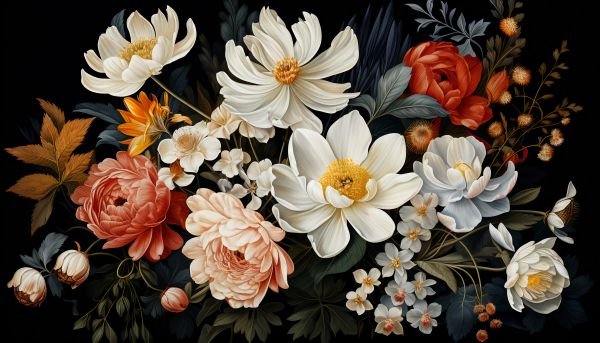 A modern twist on the botanic illustration style. A swirl of flowers to bring magic in your room…