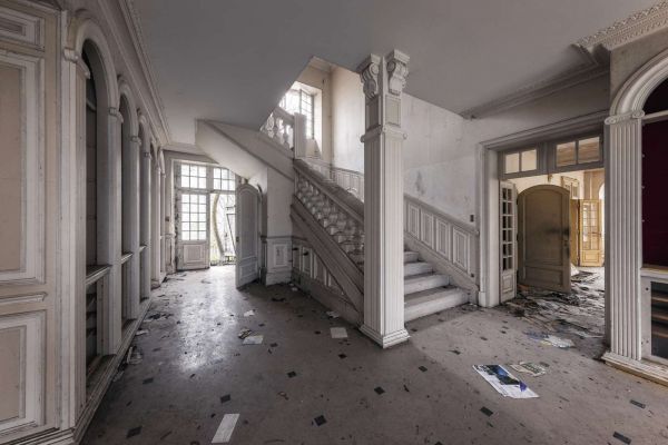 Lobbyen på et forlatt hotell på et feriested i Øst-Frankrike. Dette hotellet har sannsynligvis aldri sett en gjest. Pengene til prosjektet tok slutt før det ble åpnet, og det ble aldri tatt i bruk.