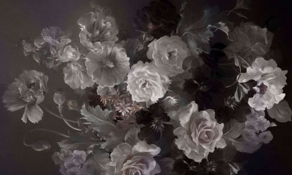 Dette stemningsfulle og elegante designet fanger den raffinerte skjønnheten av klassiske blomsterstilleben i et harmonisk fargepalett av gråtoner, krem og subtile aksenter av pudderrosa og beige. De frodige rosene og de sarte blomsterknoppene ser nesten ut til å lyse mot den dype, mørke bakgrunnen, noe som gir en dramatisk og luksuriøs effekt. De subtile penselstrøkene og de myke overgangene mellom lys og skygge gir helheten et romantisk, nesten nostalgisk preg. Takket være de nedtonede og elegante fargene passer dette designet perfekt inn i et klassisk, vintage eller moderne interiør. Den mørke bakgrunnen tilfører et snev av mystikk og dybde, mens de lyse blomstene gir en raffinert kontrast. Dette designet kombinerer vakkert med materialer som fløyel, marmor og mørke tresorter. I et minimalistisk interiør kan det være et stilfullt blikkfang, mens det i et landlig eller romantisk interiør utgjør en harmonisk tillegg. På grunn av det tidløse og luksuriøse utseendet er dette designet spesielt egnet for rom som soverom, stue eller en elegant spisestue. De dempede fargene skaper en rolig og avslappende atmosfære, mens de rike detaljene tilfører et snev av raffinement og storhet. For en ekstra stemningsfull og luksuriøs utstråling kan tilbehør som gullakenter, antikke speil og myk stearinlys belysning legges til. Dette tidløse blomsterdesignen bringer skjønnheten av klassisk malerkunst til livs og danner et vakkert grunnlag for et elegant og stilfullt interiør.