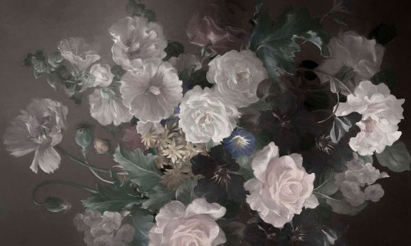 De frodige blomstene og dype nyansene gjør dette designet spesielt egnet for rom som stuen, soverommet eller et elegant spiserom. Det tilfører et snev av klassisk skjønnhet og raffinement til rommet, mens den mørke bakgrunnen skaper en intim og varm atmosfære.