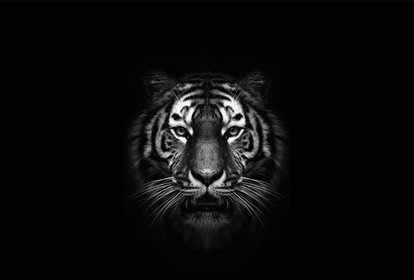Med dette 'Dark Tiger' tapetet gir du interiøret ditt et nytt liv. Fordi trykket er svart og hvitt, kan du enkelt kombinere dette tapetet i nesten alle hjem.