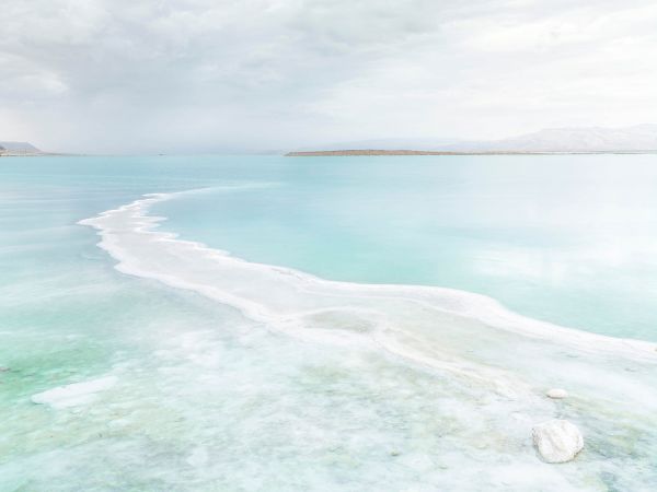 Unikt fototapet av Dødehavet. Fjellene kan sees i det fjerne.
