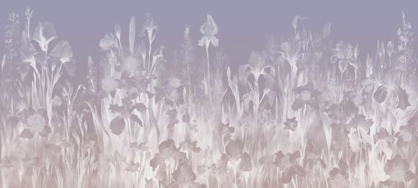 En myk, beroligende blomsterhav full av iris og påskeliljer i lavendel- og lilla nyanser. Den drømmende akvarellstilen utstråler ro og ømhet, perfekt for et avslappende interiør.