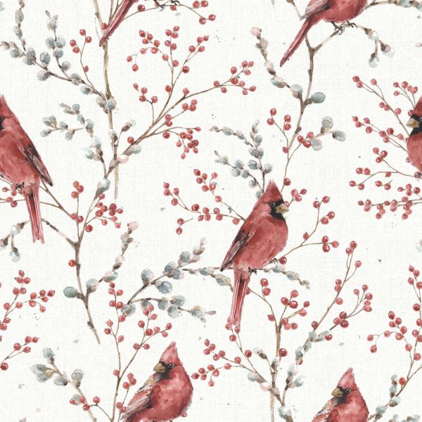 Dette stemningsfulle designet fanger sjarmen av en rolig vintermorgen, med knallrøde kardinaler som hviler på grener fulle av bær. Illustrasjonene er utført i en delikat akvarellteknikk som gir et raffinert, nesten håndmalt utseende. De røde fuglene danner en vakker kontrast til de myke grågrønne og blågrå nyansene i løvverket, mens den subtile bakgrunnsstrukturen gir dybde til helheten uten å dominere. I et klassisk interiør utgjør dette designet en varm aksent, spesielt i kombinasjon med tremøbler, fløyelsaktige stoffer og dype farger som burgunderrød eller mosegrønn. Også i en hytte- eller landlig stil passer dette motivet perfekt: tenk på hvitt tre, strikkede pledd, myk ull og naturlige materialer. Det tilfører en koselig, nostalgisk atmosfære til ethvert rom. Fargebruken er myk og balansert: knallrød for fuglene, kombinert med grener i beige- og bruntoner, bær i varm rød og grågrønne blader. Disse fargene skaper en rolig, vinterlig atmosfære uten å bli dyster. Dette designet kommer vakkert til sin rett i en stue, gang eller lesekrok hvor varme og atmosfære er ønsket. Også svært egnet for en sesongbetont aksent i et soverom eller vinterhage, spesielt i vintermånedene. Den subtile repetisjonen av mønsteret gir ro, mens kardinalene tilfører et glitrende og livlig element.