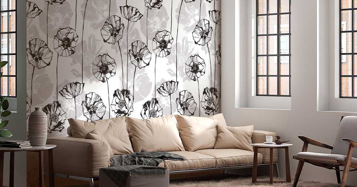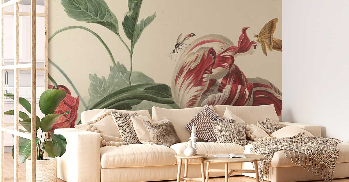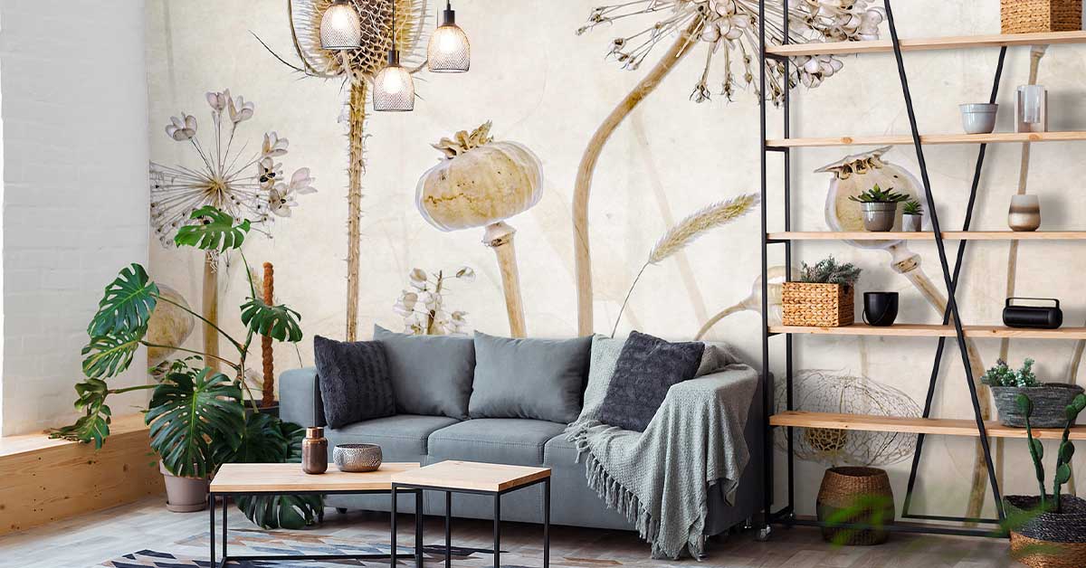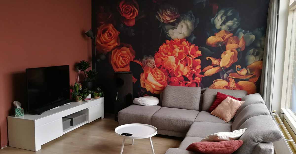 For eksempel kan du kombinere blomstertapet med romantisk innredning, bohemsk innredning og klassisk innredning. Men absolutt også med en moderne stil, design eller industriell. Vil du helst ikke ha for mange lyse farger i stuen din? Velg deretter et lett tapet, for eksempel kirsebærblomst, hvit orkidé eller de lyse blomstene. Foretrekker du mørkt blomstertapet? Da er stillebenet med blomster i en glassvase, de store palmebladene eller utskriften av tropiske blomster sannsynligvis mer for deg.