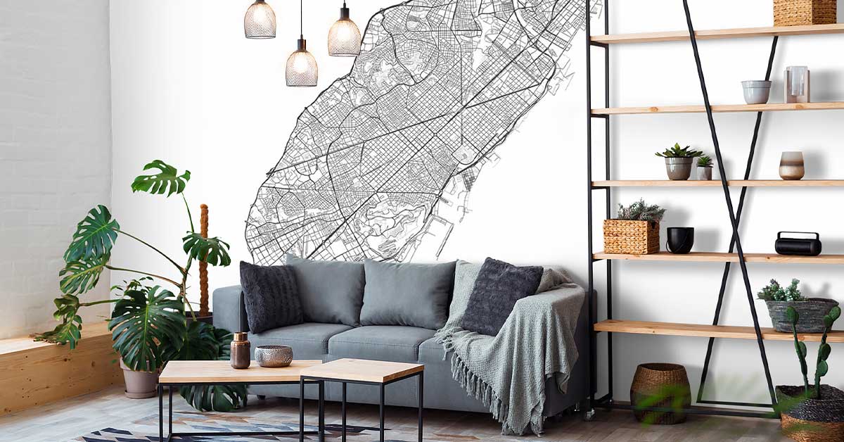 I vårt sortiment finner du forskjellige typer Barcelona-tapeter. Hva med et kart over Barcelona som tapet? Vi har flere eksempler med rene linjer for både en hvit bakgrunn og en svart. Perfekt for en industriell eller moderne livsstil. Men også hvis du liker å holde interiøret stille og bare vil gi et nikk til favorittbyen din i Spania.