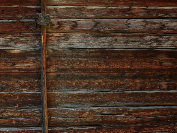 En vegg av gammelt tre støttet av en støttebjelke. Kombiner dette fototapetet i stuen og skap en enda varmere atmosfære hjemme.