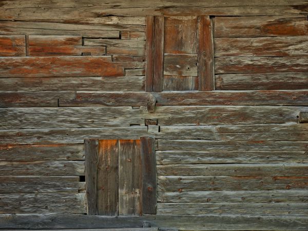 En vegg med gammelt treverk med 2 små dører. De små dørene i dette treverket gir en leken effekt, ideell for hjemmet.