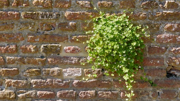 Gammel steinmur med planter