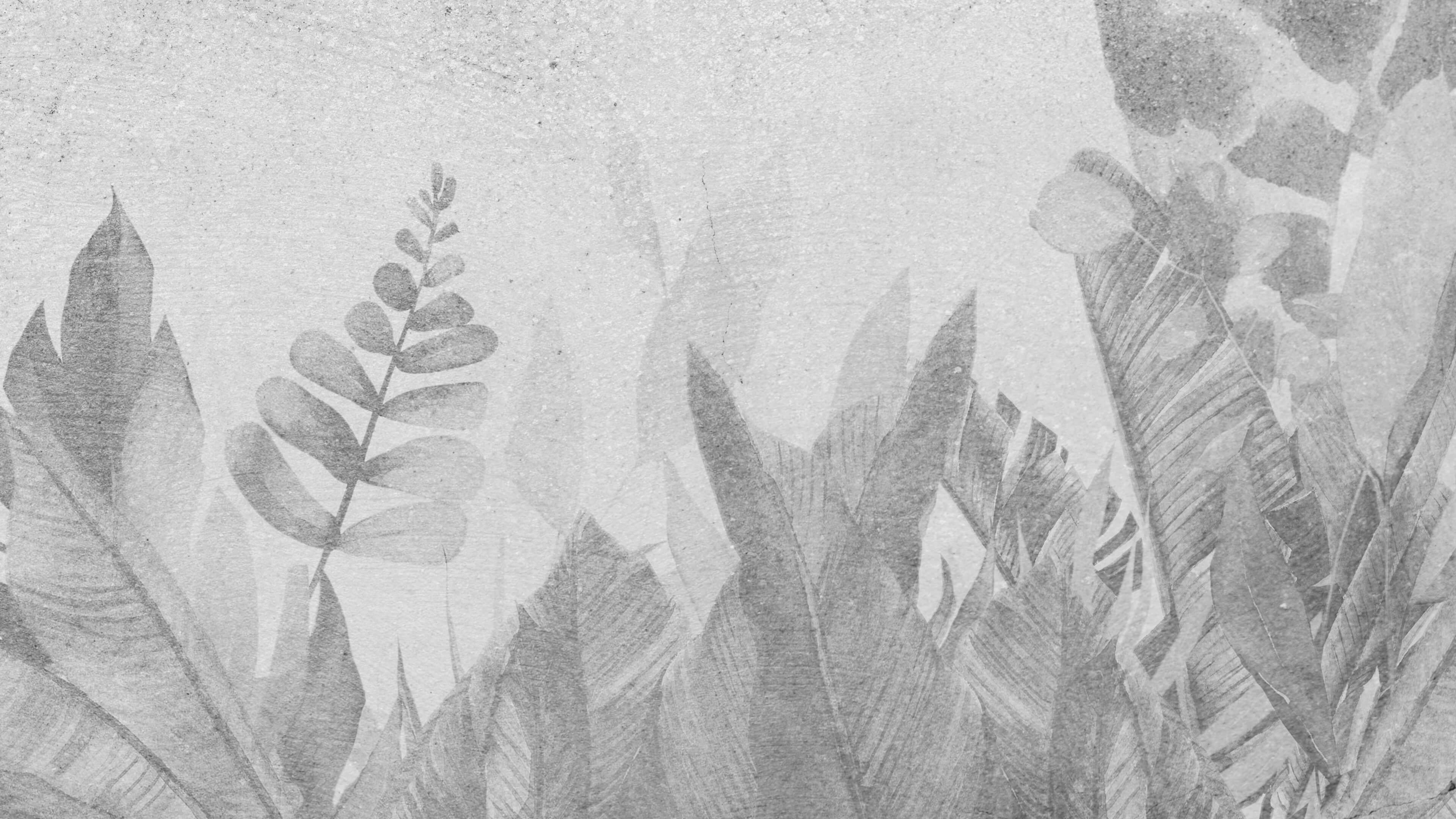 Muntre jungeldyr med ulike planter på betong i forgrunnen. Betongutseendet gir dette tapetet et industrielt utseende.