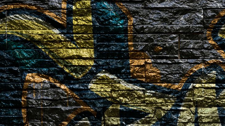 Graffiti på svarte steiner for et kjølig rom. Den svarte bakgrunnen gjør dette tapetet til et kult rom fra alle rom.