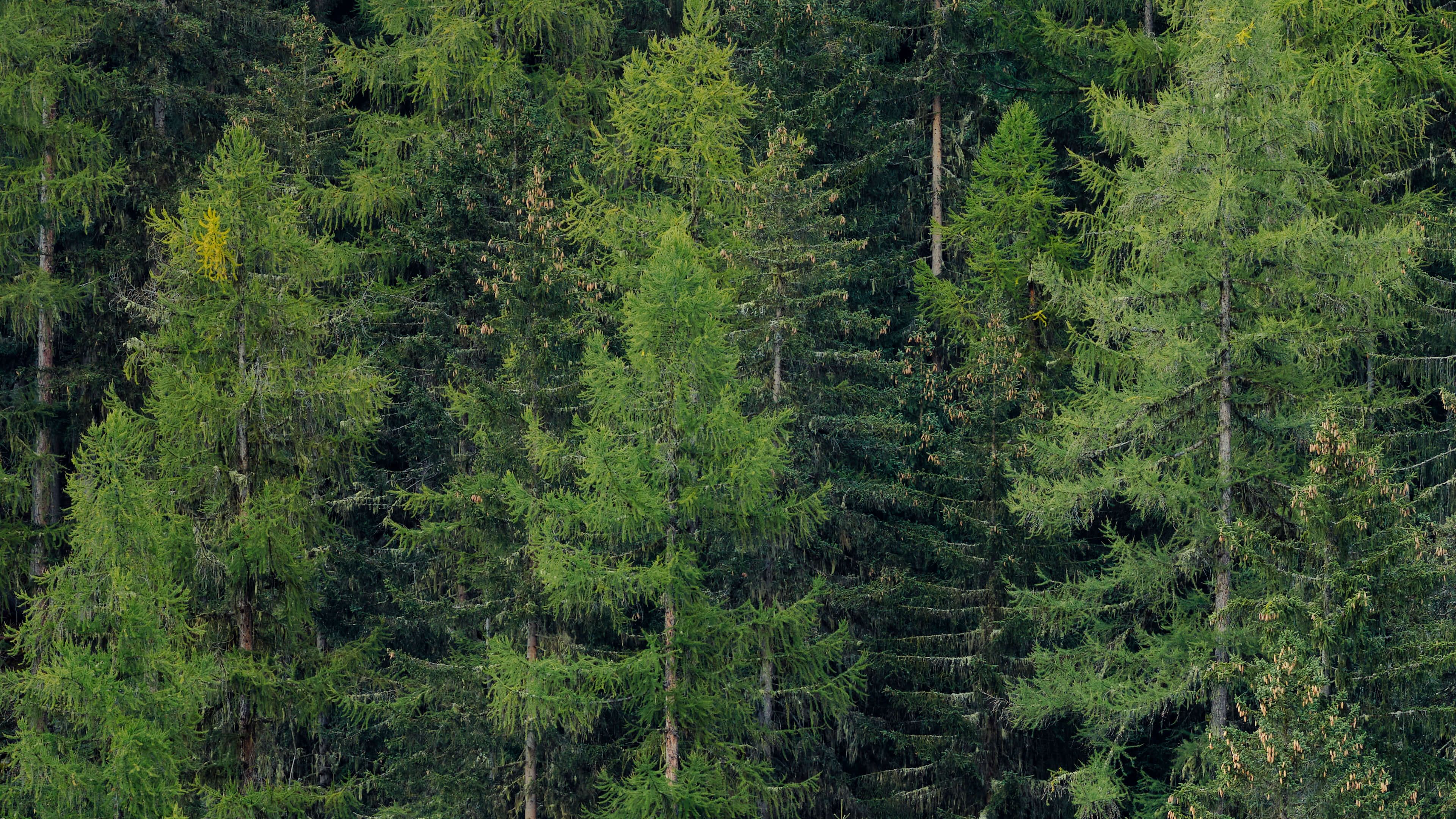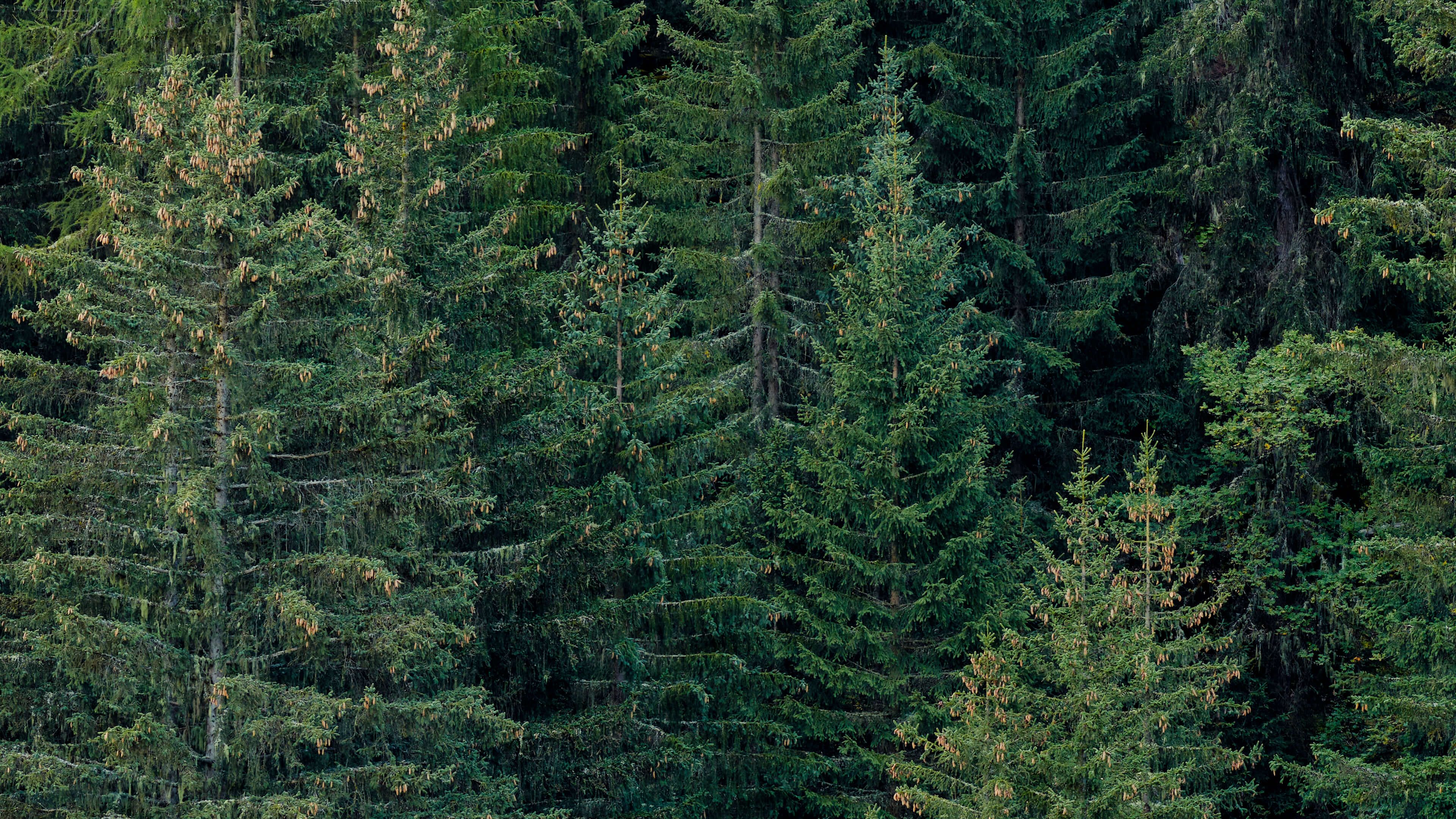 Grønn granskog på fototapet. Med dette fototapetet tar du med deg et stykke av skogen inn i hjemmet ditt.