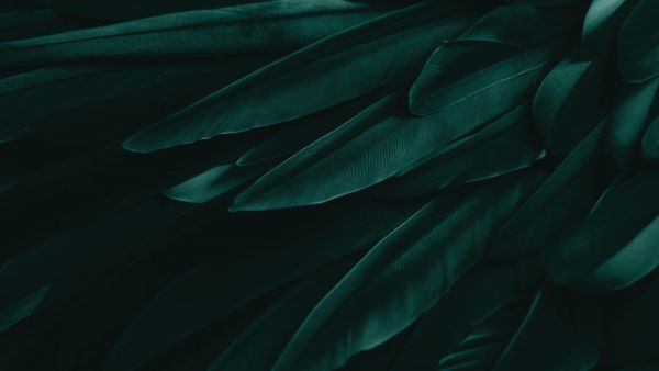 Et nærbilde av eksotiske fjær i en vakker mørkegrønn farge.