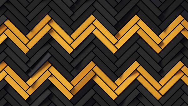 Fiskebein i 3D med gule og sorte farger. På grunn av 3D-effekten er det som om dette fiskebeinet kommer ut av veggen.