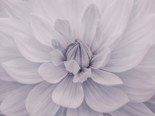 Et nærbilde av en hvit dahliablomst. Kombiner for eksempel dette fototapetet i stua.