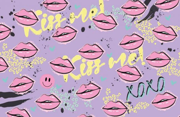 kyss meg! Syrin bakgrunn med rosa lepper, kyss kyss.