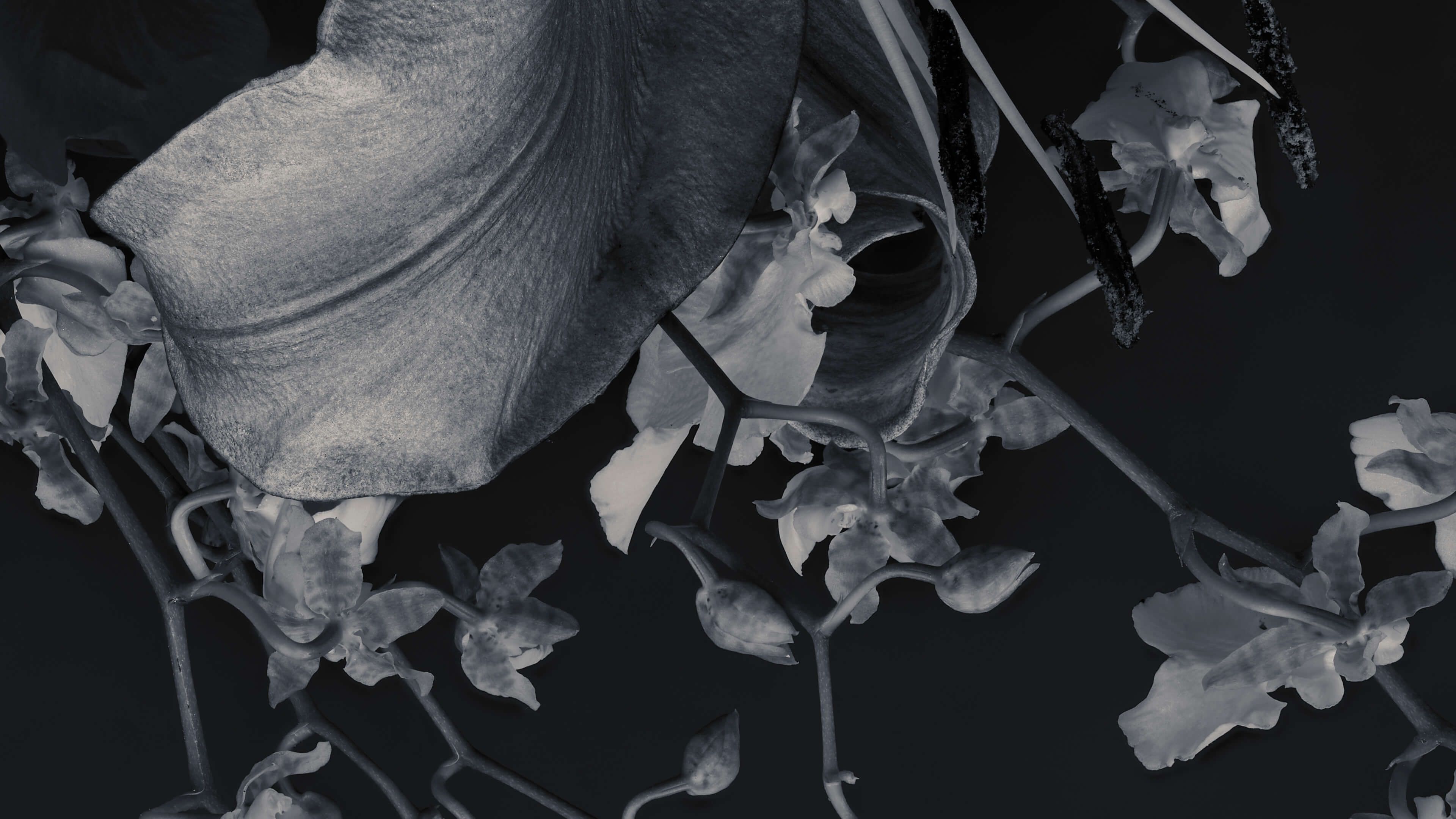 Komposittblomster i svart-hvitt i forskjellige materialer
