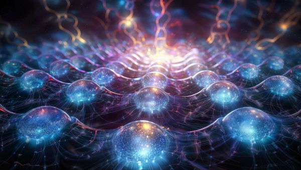 Dette hypnotiserende bildet av glødende, nettverksformede sfærer fremkaller bildet av et komplekst kosmisk nettverk eller de interstellare forbindelsene av et nevralt landskap.