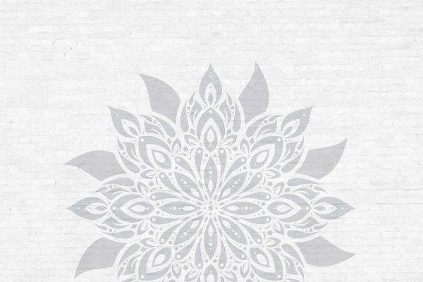 Dette raffinerte lysegrå mandalamønsteret mot en hvit mursteinsbakgrunn bringer en elegant og rolig atmosfære til ethvert rom. De delikate detaljene i mandalaen og de myke gråtonene skaper en beroligende og raffinert atmosfære, perfekt for moderne og skandinaviske interiørstiler. Det symmetriske mønsteret til mandalaen skaper et harmonisk utseende, mens murbakgrunnen tilfører en subtil tekstur som gir rommet liv.
