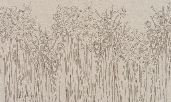 Malte påskeliljer på fototapet. På grunn av den rolige fargen passer dette fototapetet i nesten alle rom.