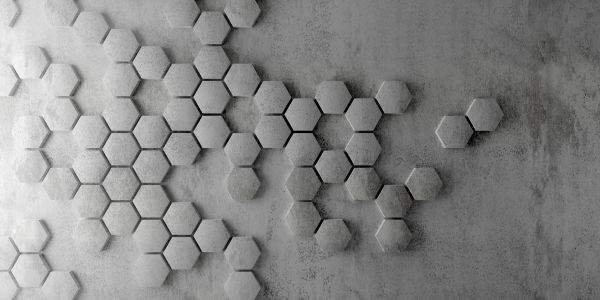 Moderne Hexagons på betong. Sekskantene har en 3D-effekt som gjør at det ser ut som om sekskantene kommer ut av veggen.
