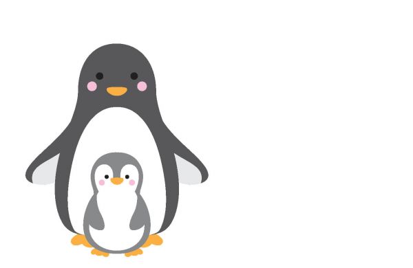 Fototapet med en stor og liten pingvin på et hvitt tapet