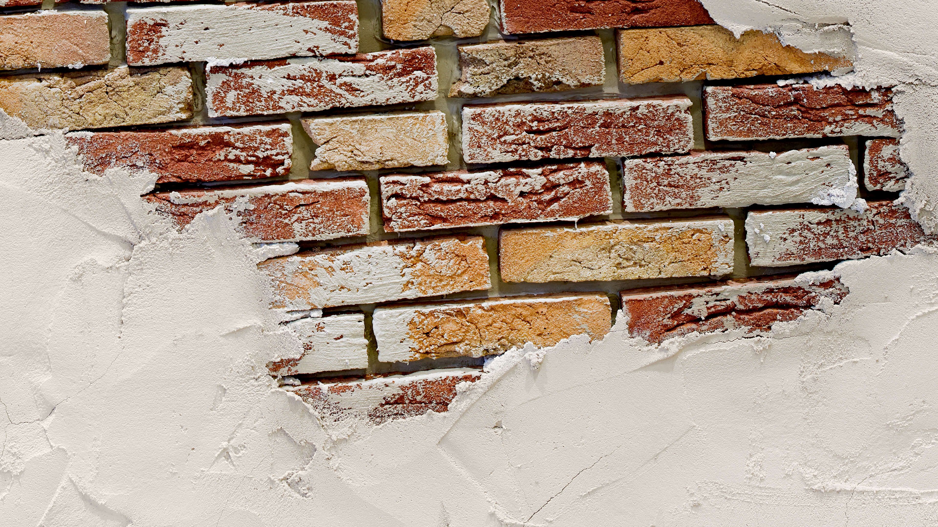 Muur met stucwerk en bakstenen. Maak van jouw saaie ruimte een unieke ruimte met dit fotobehang.